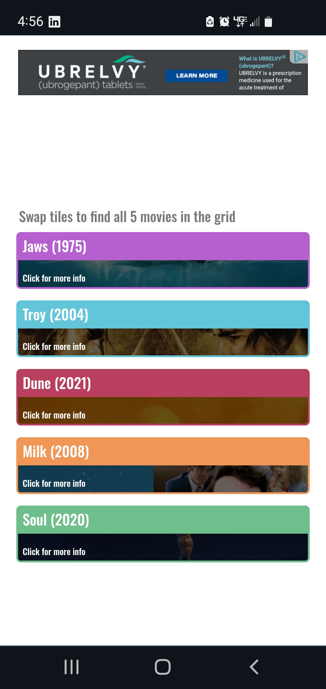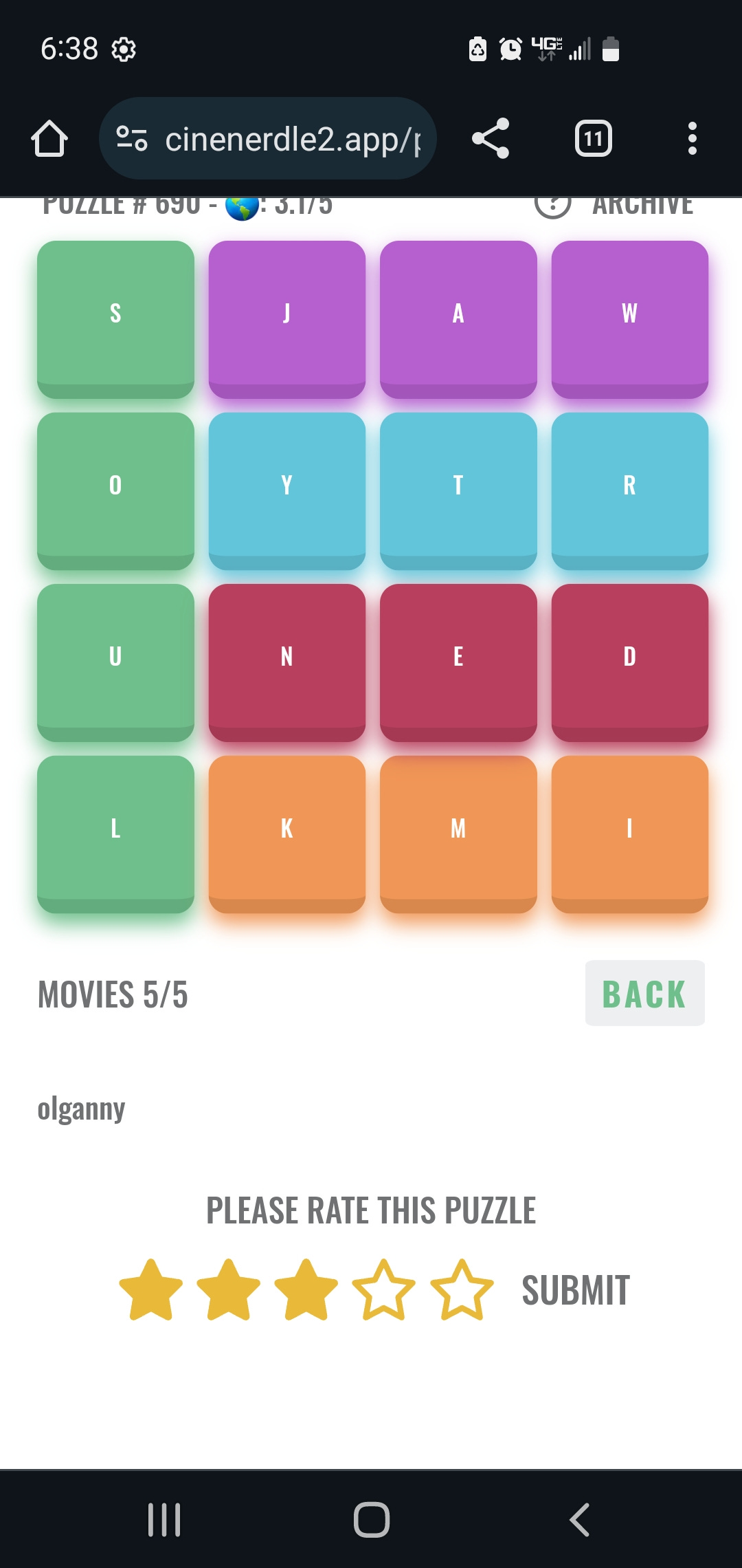 Congratulations are in order to Olganny for pulling off this wild Cine2Nerdle yesterday. The puzzle required using sixteen unique letters to spell four movies, and one (and only one) letter from each movie had to come together to spell a fifth. I tried to construct a similar idea, and I can tell you, it's much harder than it looks!