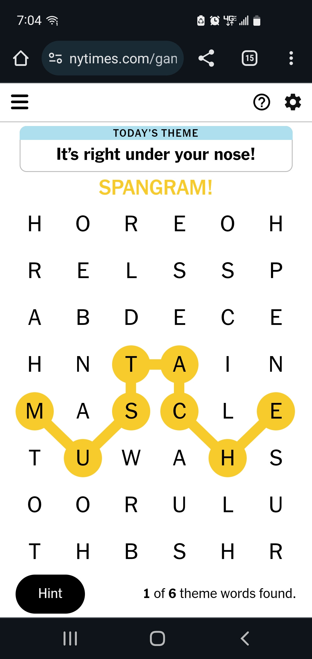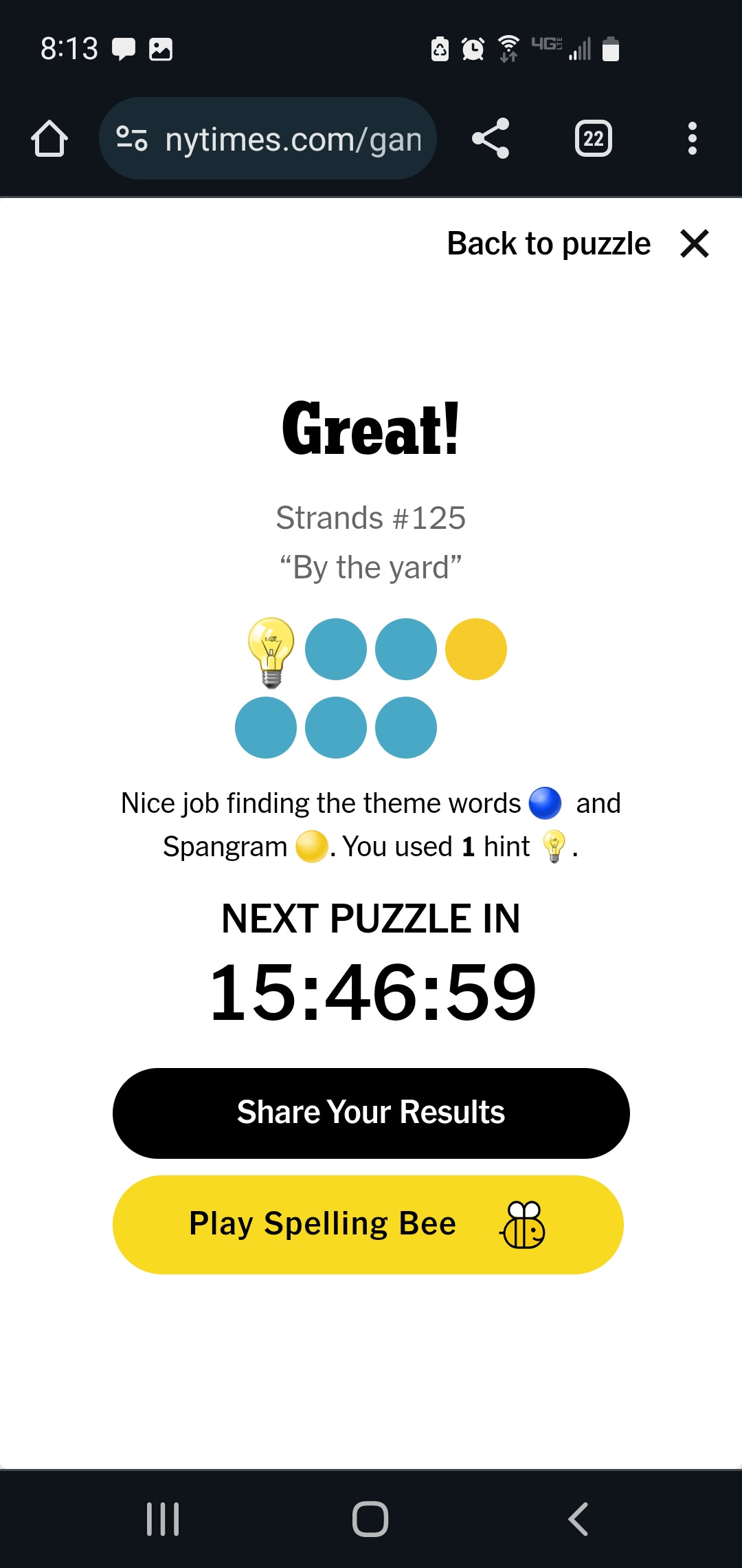 I say, don’t hint-shame yourself. Some Strands solvers make it a point of pride never to use hints. The design of Strands reinforces this idea: if you get through a game using no hints, it’ll say “Perfect!” With one hint, it’ll say “Great!” and with any more, it’ll say “Well Done!”