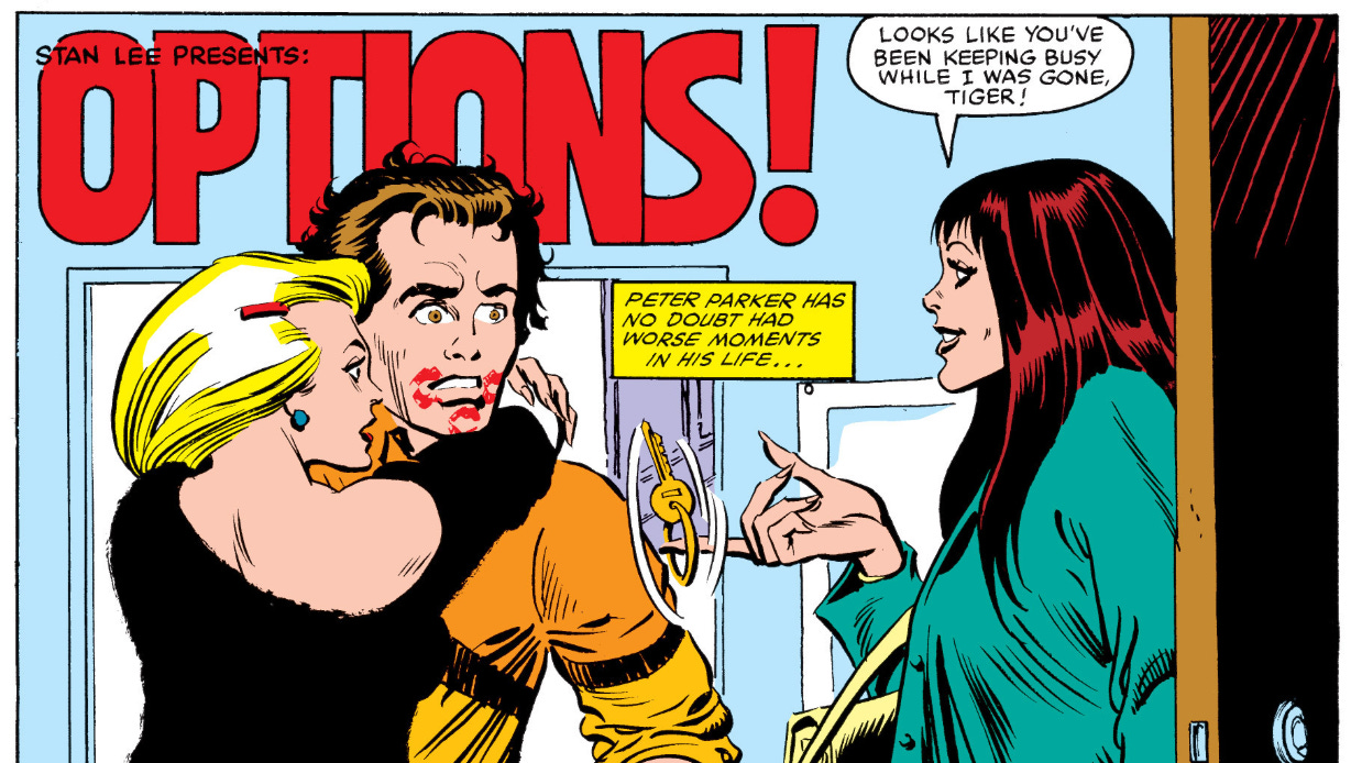 When Mary Jane waltzed back into Peter’s life and apartment (Amazing Spider-Man #242-243), she took in the sight of Peter’s lipstick-stained face like it was a great joke.