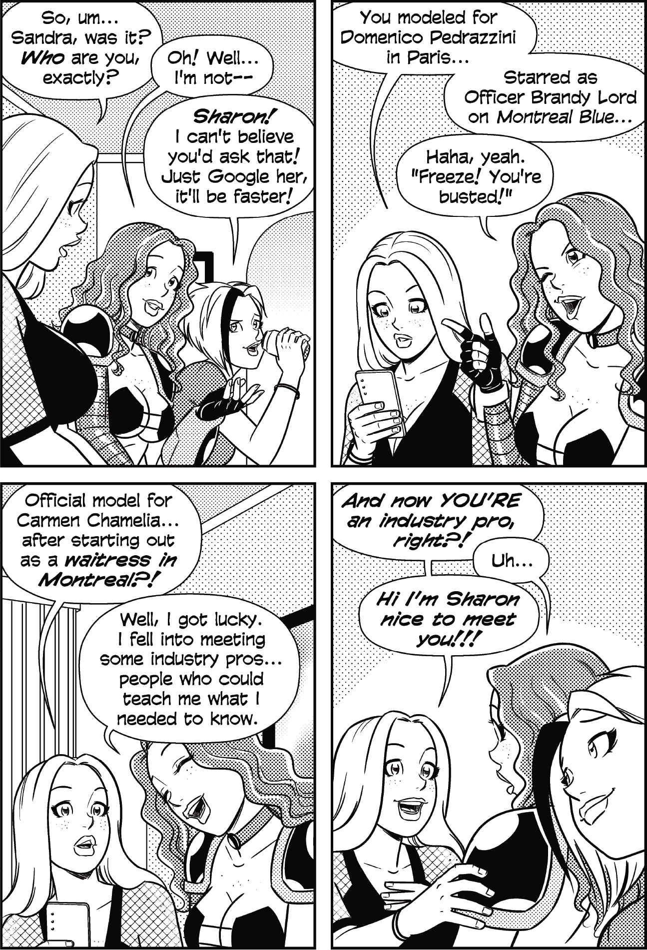 With “Guest Heroine,” we’re getting back to more superhero-inspired stuff. Any time a hero has a sustained appearance in another hero’s series, they qualify as a guest hero. Sandra here is “just” a successful actress and model, but that makes her plenty heroic to social climber Sharon.
