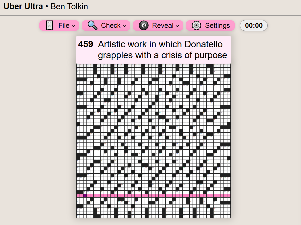 There were a few times at the end of last year when I thought, “You know, 2025 is a square number—45x45. Someone really should do a crossword grid that size.” Then I learned Ben Tolkin had done just that. So of course I had to try it. The snapshot below shows my favorite clue. You can try it here.