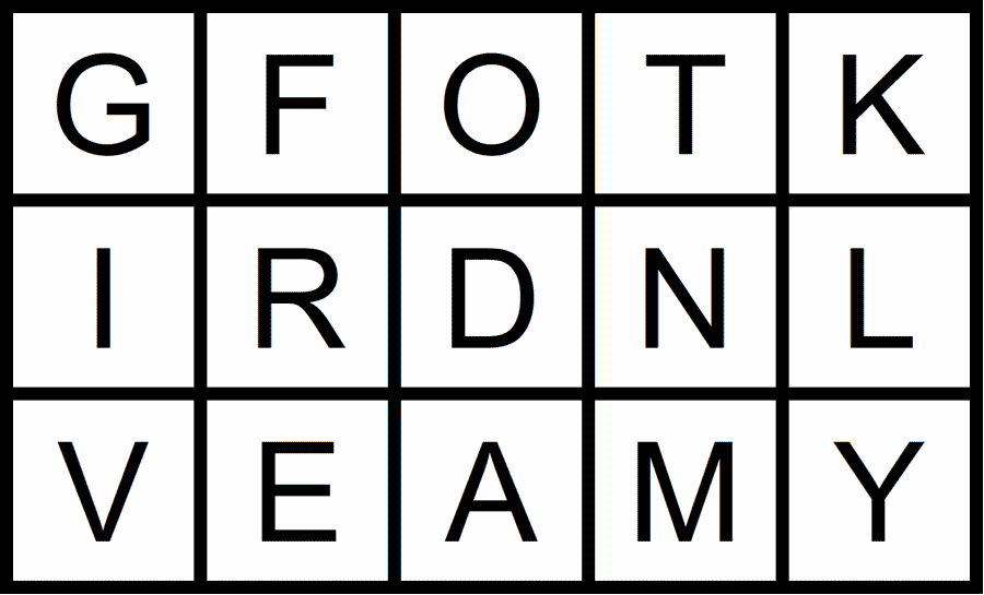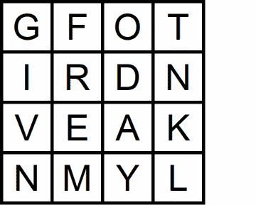 The idea’s straightforward and admits a variety of difficulty levels. The puzzle gives you a Boggle-style grid and a famous saying. Users must arrange letters in the grid so that it can spell any word in the quote. Grids come in different shapes and sizes. Apologies for spoiling one of the puzzles, but I needed an example: